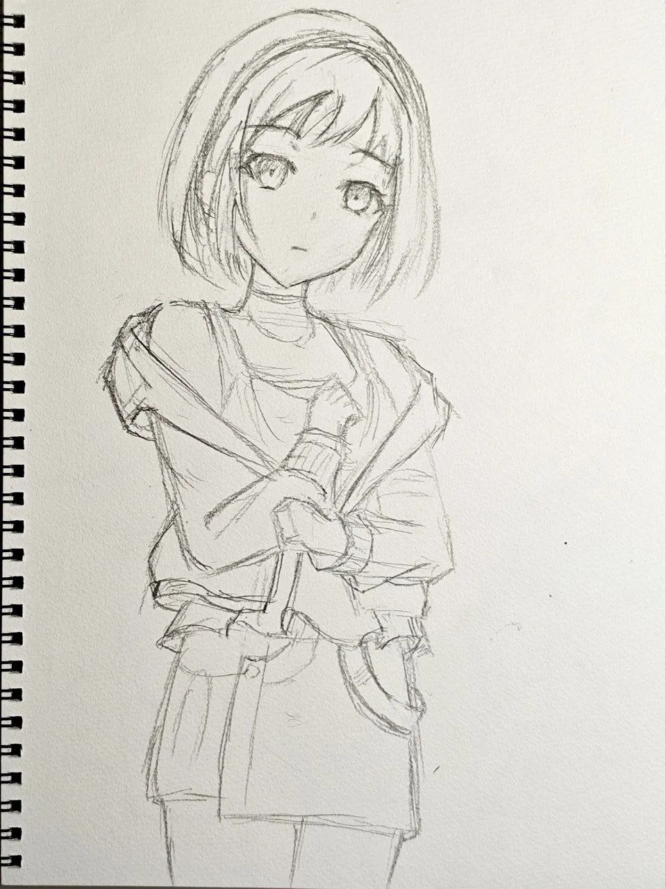 俺從衣服開始畫的,因爲中間那塊三角形很顯眼.